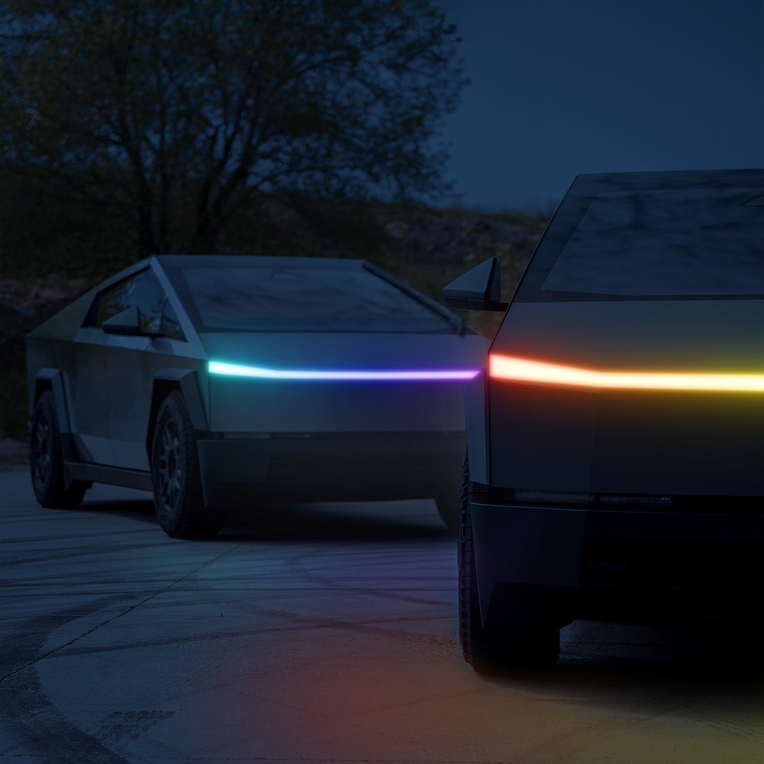 You can control the on/off function from your Cybertruck display as you normally would, and all of the colors and effects are controlled with an easy to use mobile app.